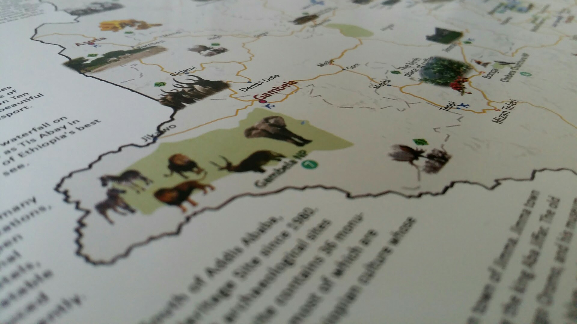 This is a comprehensive tourist map of Ethiopia — a high-quality, colorful, and pictorially illustrated map with concise descriptions. It highlights all major tourist attractions as well as potential investment areas across the country.